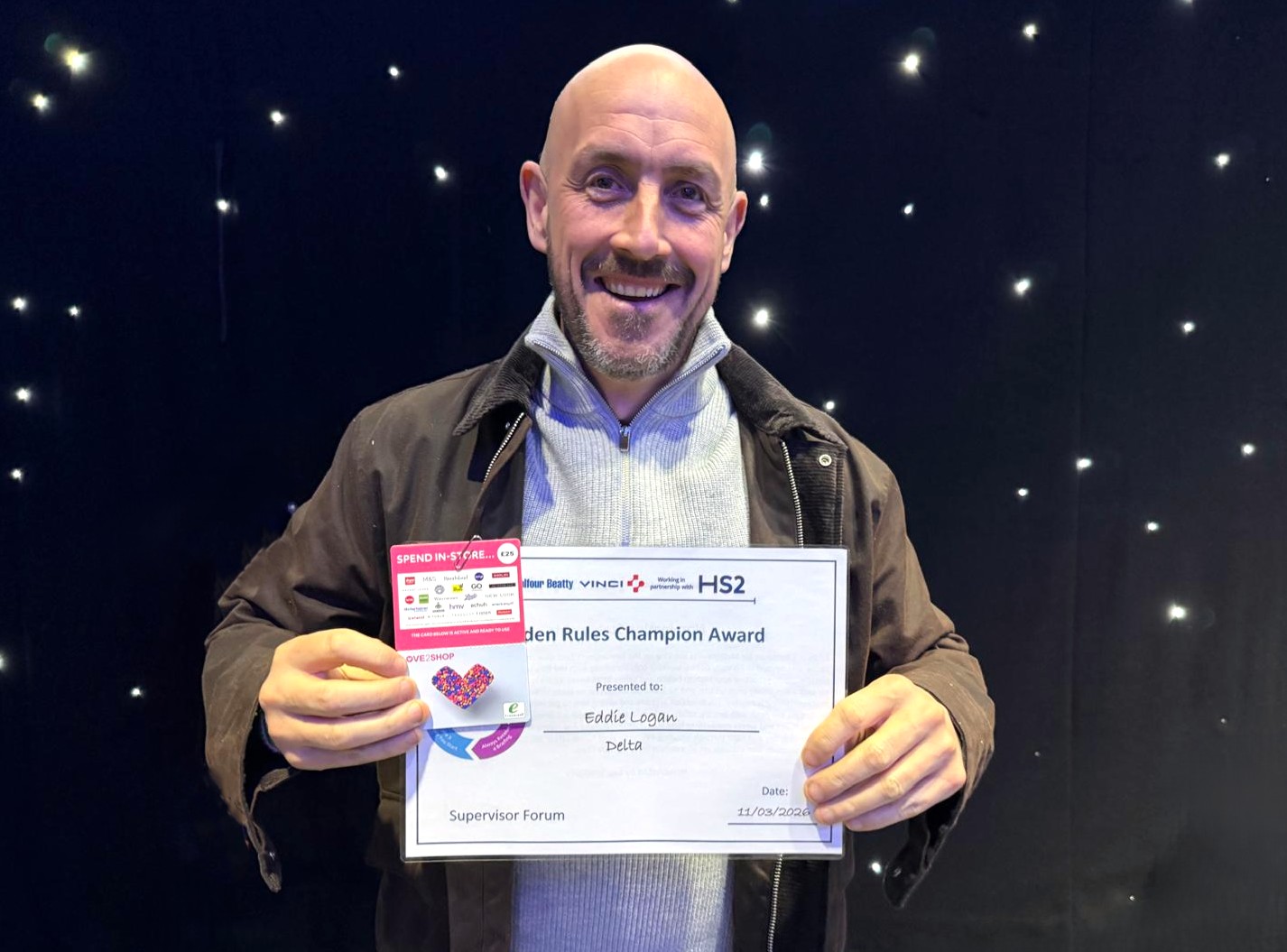 Eddie’s nomination, submitted by BBV, highlighted the impact he makes on site every day: “Eddie consistently goes above and beyond in his daily duties, working collaboratively with the BBV team and demonstrating a conscientious, proactive approach to health and safety at all times. He is the first point of contact when issues arise on site, and he is the person everyone turns to when support, guidance, or problem solving is needed”.