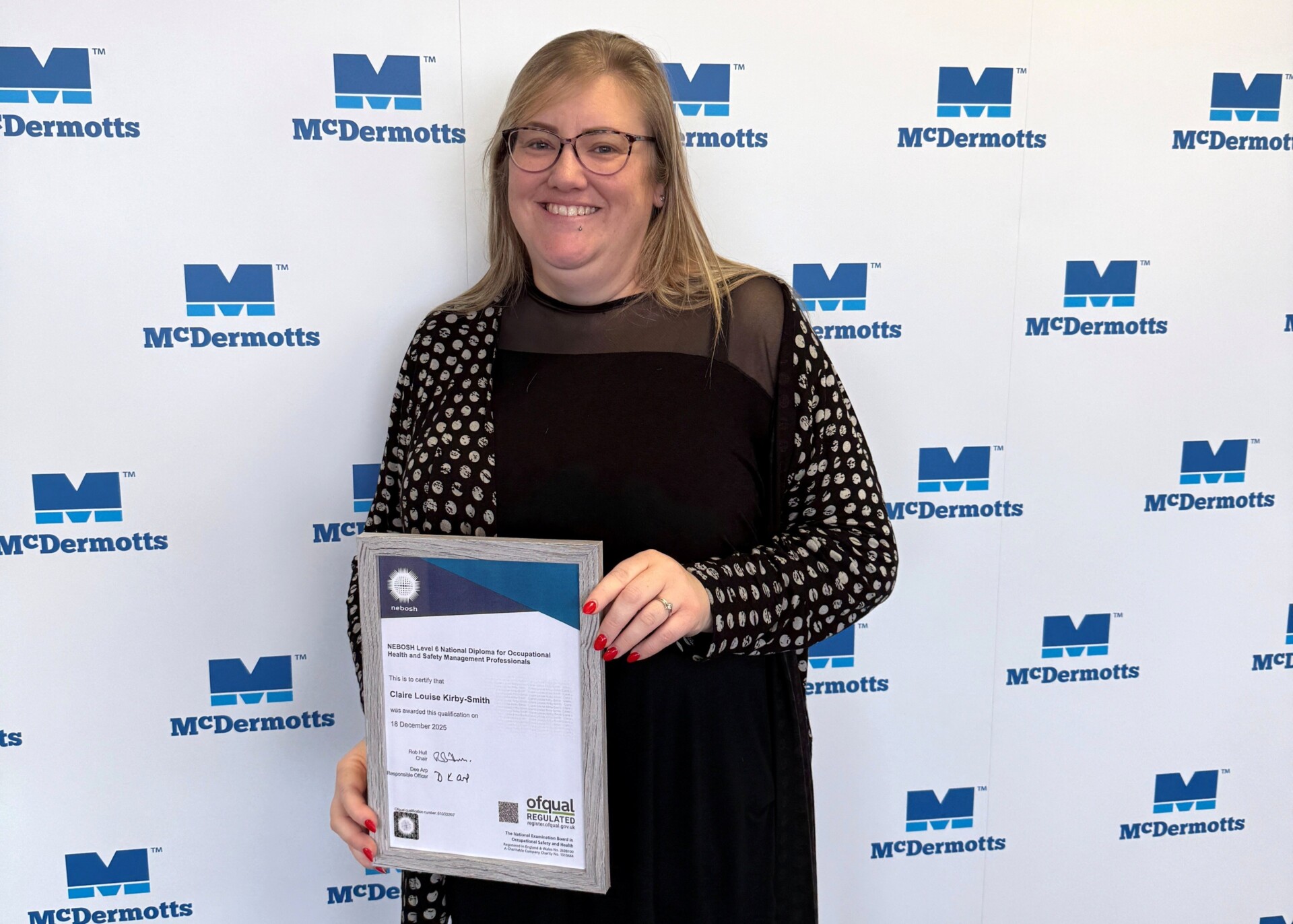 Reflecting this commitment, we are delighted to announce that our SHEQ Compliance Advisor, Claire Kirby-Smith, who has been a valued member of the McDermotts team for 14 years, has successfully achieved her NEBOSH Level 6 National Diploma for Occupational Health and Safety Management Professionals qualification.